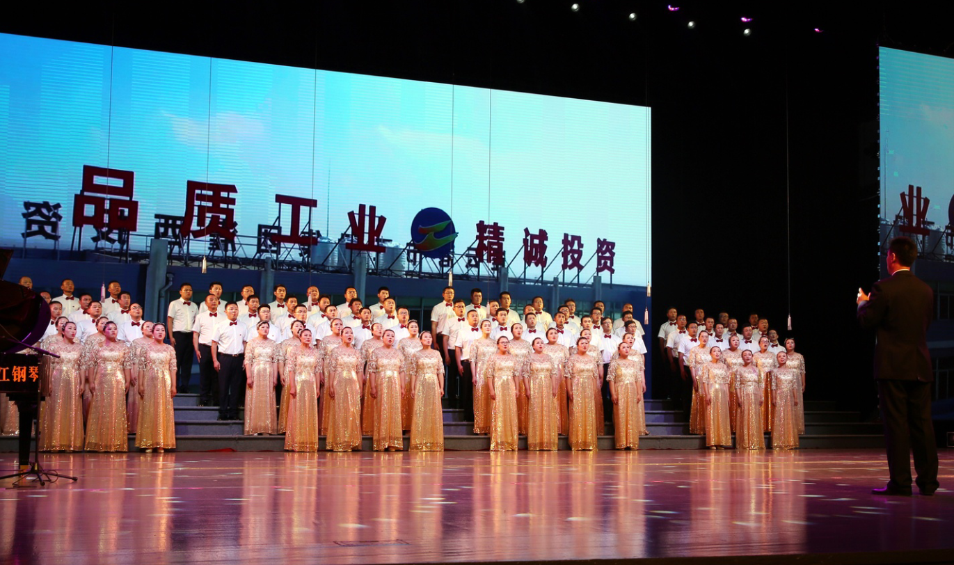 “風在吼,馬在叫,黃河在咆哮……”嘹亮的歌聲在市藝術中心舞臺上響起, 6月28日下午,集團公司2019年“感黨恩、頌祖國、贊工投”大合唱比賽在此隆重舉行,灌西公司百人合唱團獲得二等獎,集團黨委書記、董事長楊龍為灌西合唱團頒發獎杯。