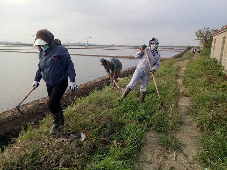 近日,實(shí)業(yè)公司海鹽基地,柴門區(qū)三個班組加緊對灘場進(jìn)行除草行動。夏日雜草叢生,嚴(yán)重影響灘容灘貌,且對灘格、溝道等造成制鹵障礙,各班組長帶領(lǐng)工人緊抓時間、人機(jī)結(jié)合除草。截止今日,三個班組共除草九千余米。(實(shí)業(yè)公司)