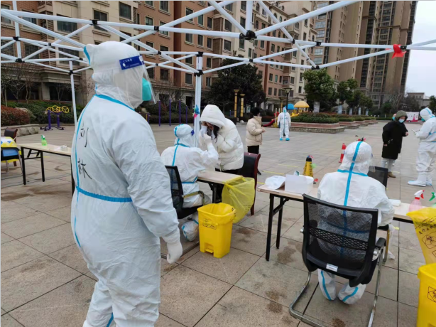 3月15日,公司緊急發(fā)通知,需要一名志愿者進(jìn)駐同科志愿服務(wù)。與以往志愿服務(wù)性質(zhì)不同的是,這次要24小時(shí)駐扎在同科,晚上也只能睡臨時(shí)搭建的帳篷。劉林,作為公司年齡最小的員工,卻在第一時(shí)間自告奮勇的報(bào)名。志愿服務(wù)的第一天,劉林先學(xué)習(xí)穿脫防護(hù)服、鞋套,然后協(xié)助工作人員采集信息、檢查健康碼、維持現(xiàn)場(chǎng)秩序、解答居民的各種問(wèn)題。這樣的工作,從早晨一直持續(xù)到晚上。簡(jiǎn)單吃完晚飯,緊接著是補(bǔ)錄綠碼人員。等所有工作結(jié)束,再進(jìn)行周?chē)h(huán)境的全面消殺工作。防護(hù)服一穿就是一整天,每每脫下時(shí),已是皮膚發(fā)皺、衣服濕透,面屏里泛滿(mǎn)水珠……已經(jīng)連續(xù)工作2天的劉林說(shuō),“累,但我們必勝,堅(jiān)持就是勝利!”